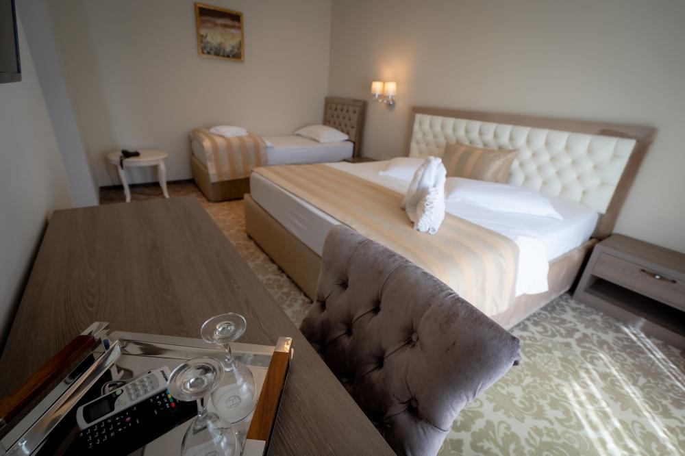 Camerele triple 103 și 107 sunt alegerea ideală pentru familii sau grupuri de prieteni, oferind spațiu suficient și dotări esențiale pentru un sejur relaxant în trei persoane.