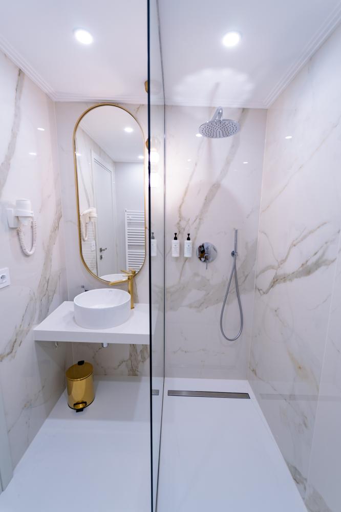Perfect for couples or guests who value comfort, the Double Room offers a welcoming space with a comfortable double bed and a peaceful courtyard view. The pleasant atmosphere is enhanced by air conditioning, ensuring an ideal temperature all year round.The modern bathroom is equipped with a shower, hairdryer, and fresh towels, providing everything needed for a comfortable stay. Guests can enjoy a complimentary selection of coffee and tea with the in-room kettle, while the spacious wardrobe, clean linens, and soft pillows with a cozy duvet all contribute to a relaxing and enjoyable experience.
